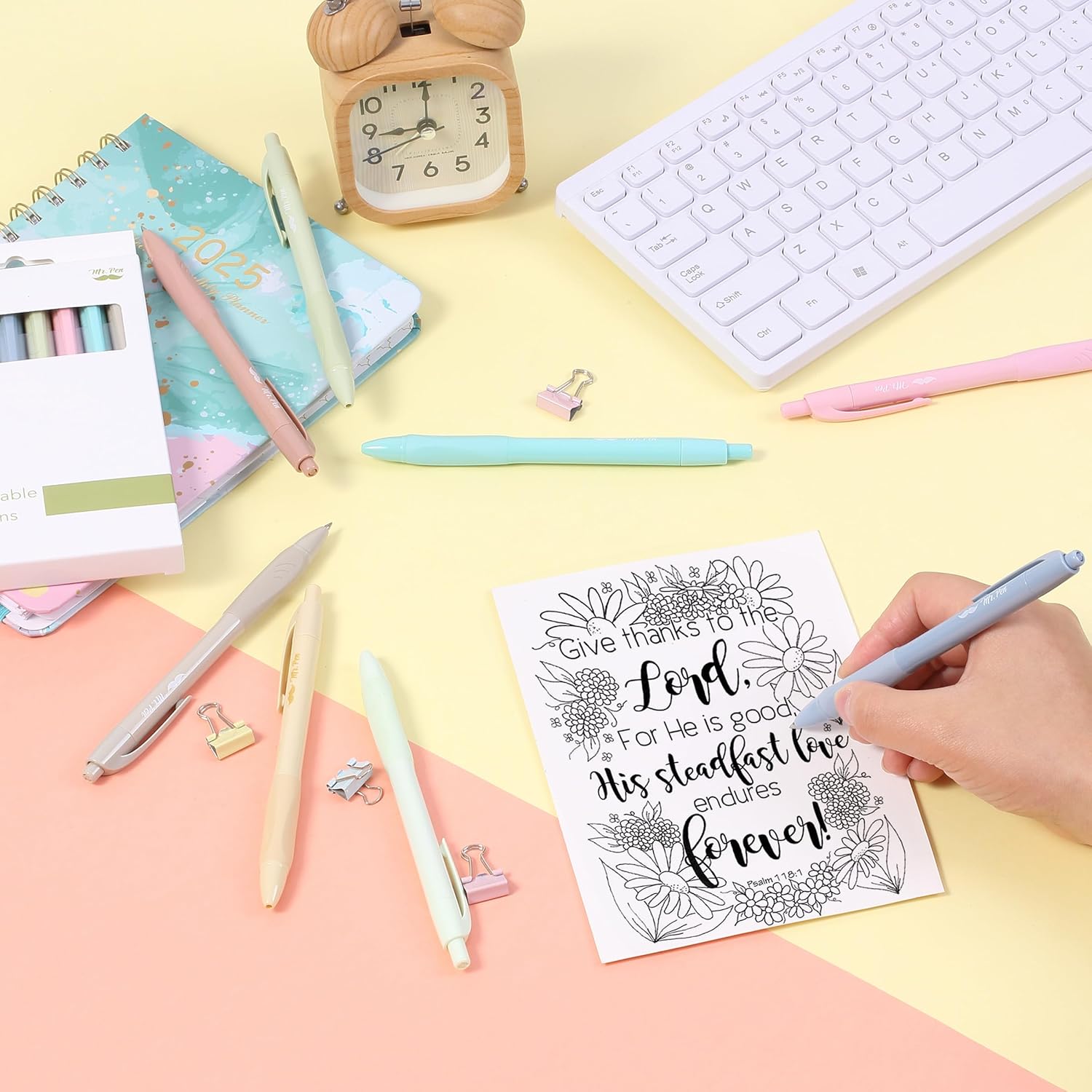 Mr. Pen- Retractable Gel Pens, 8 Pack, Black Ink, Soft Grip, Soft Pastel Barrel Gel Pens Fine Point 0.5mm, Retractable Pens