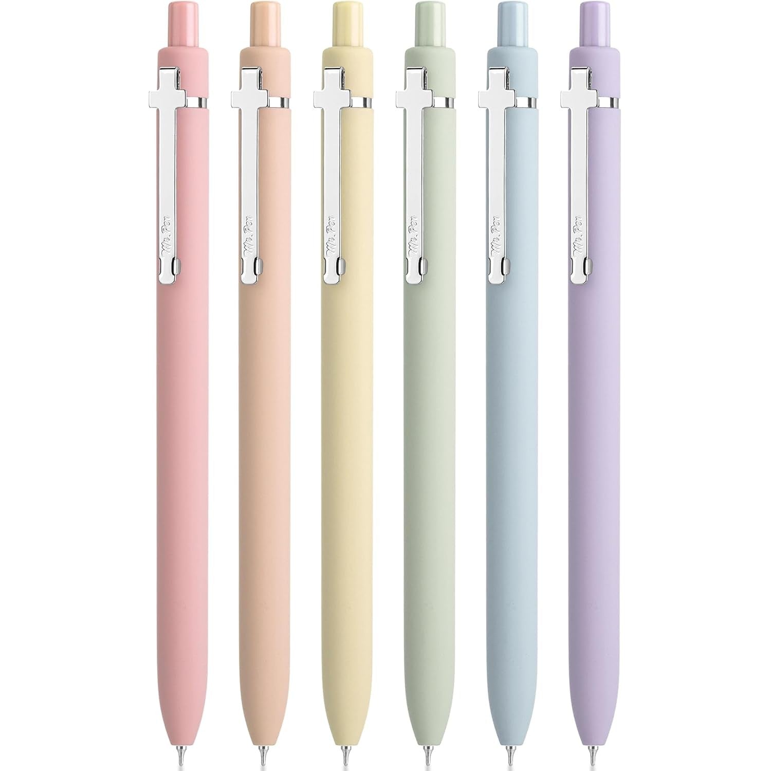 Mr. Pen- Retractable Gel Pens for Journaling, 6 Pack, 0.5 mm Black Ink, Soft Pastel Barrel with Silver Cross Clip