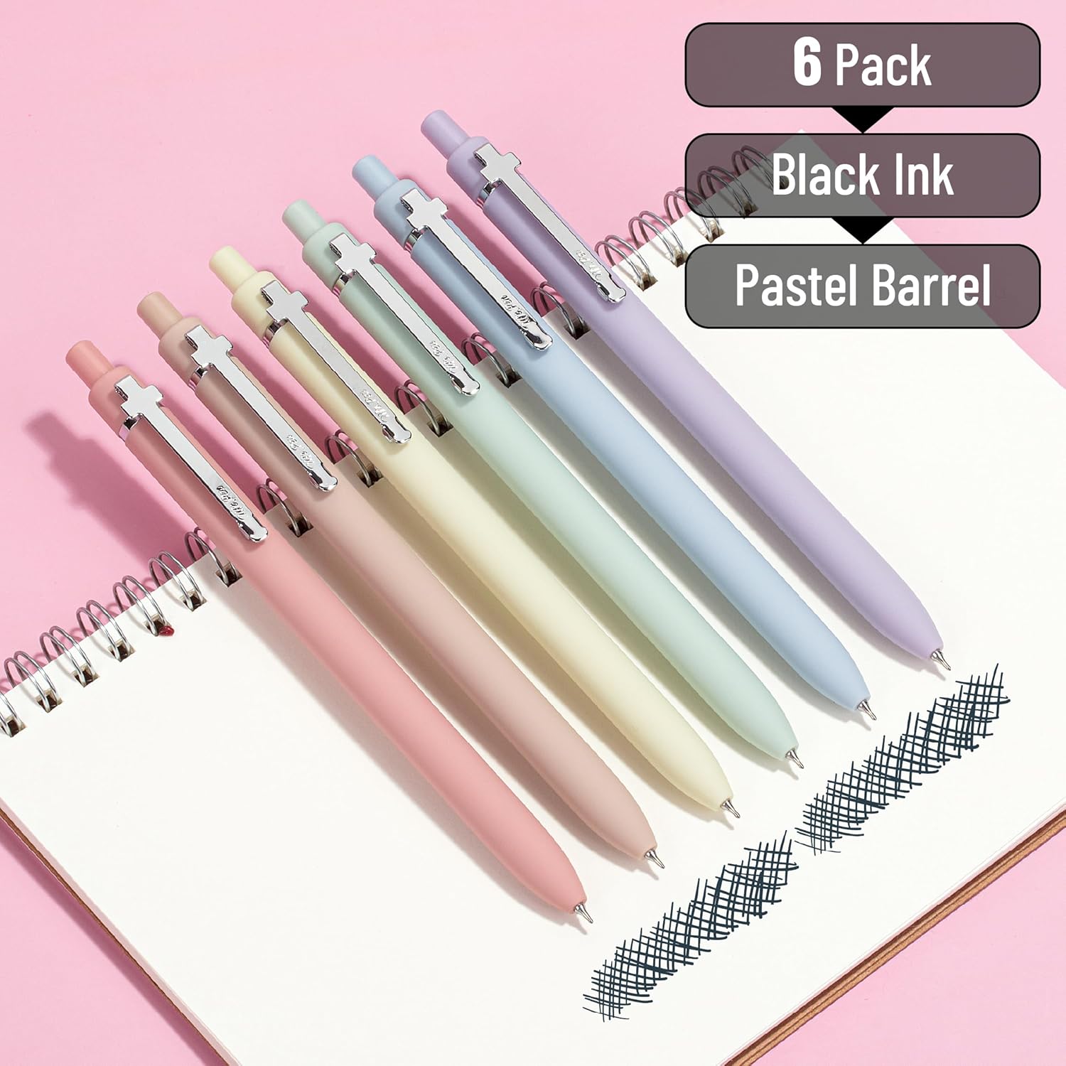 Mr. Pen- Retractable Gel Pens for Journaling, 6 Pack, 0.5 mm Black Ink, Soft Pastel Barrel with Silver Cross Clip, Smooth Writing Aesthetic Pens for Women