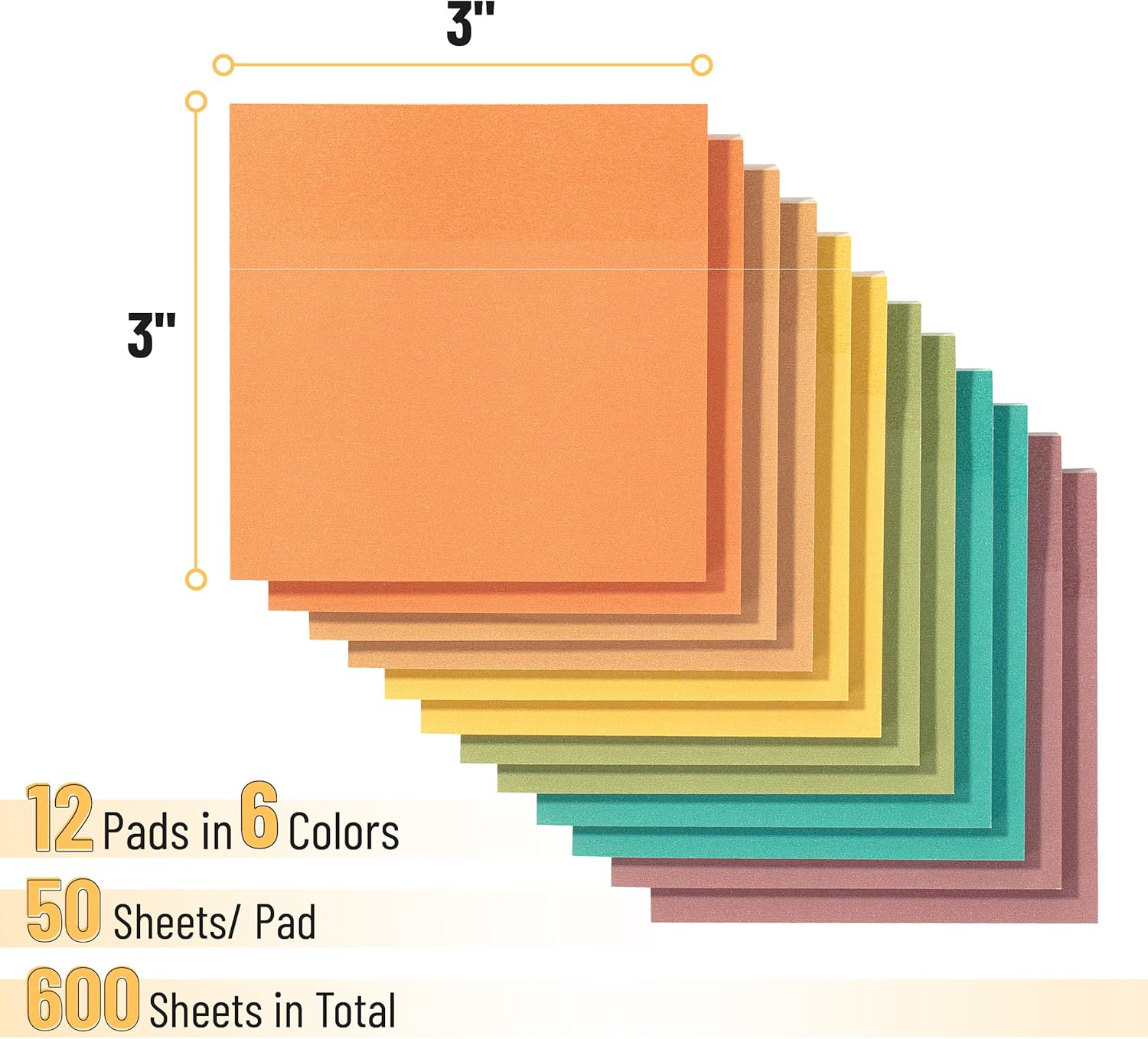 Earthy Colors Sticky Notes 3x3, 12 Pads, 600 Sheets