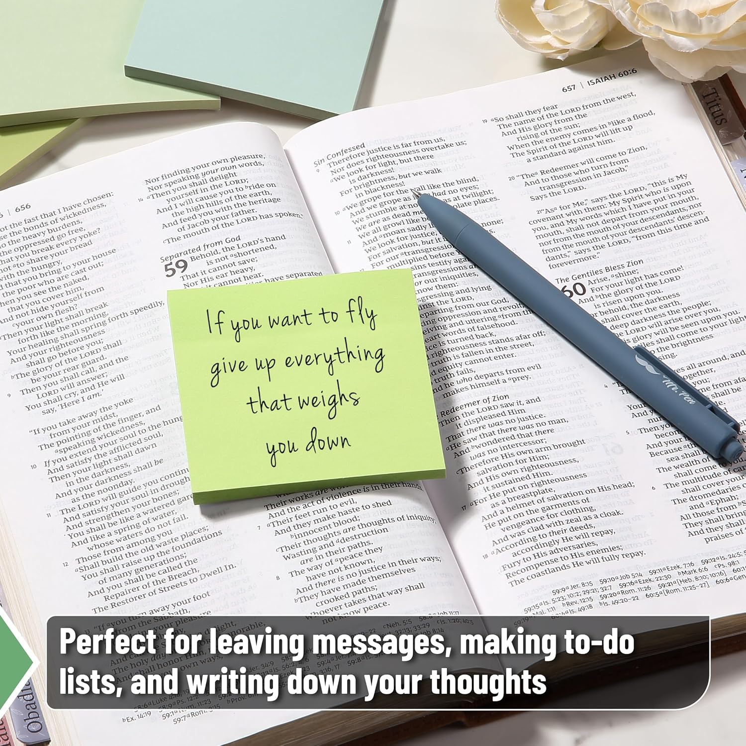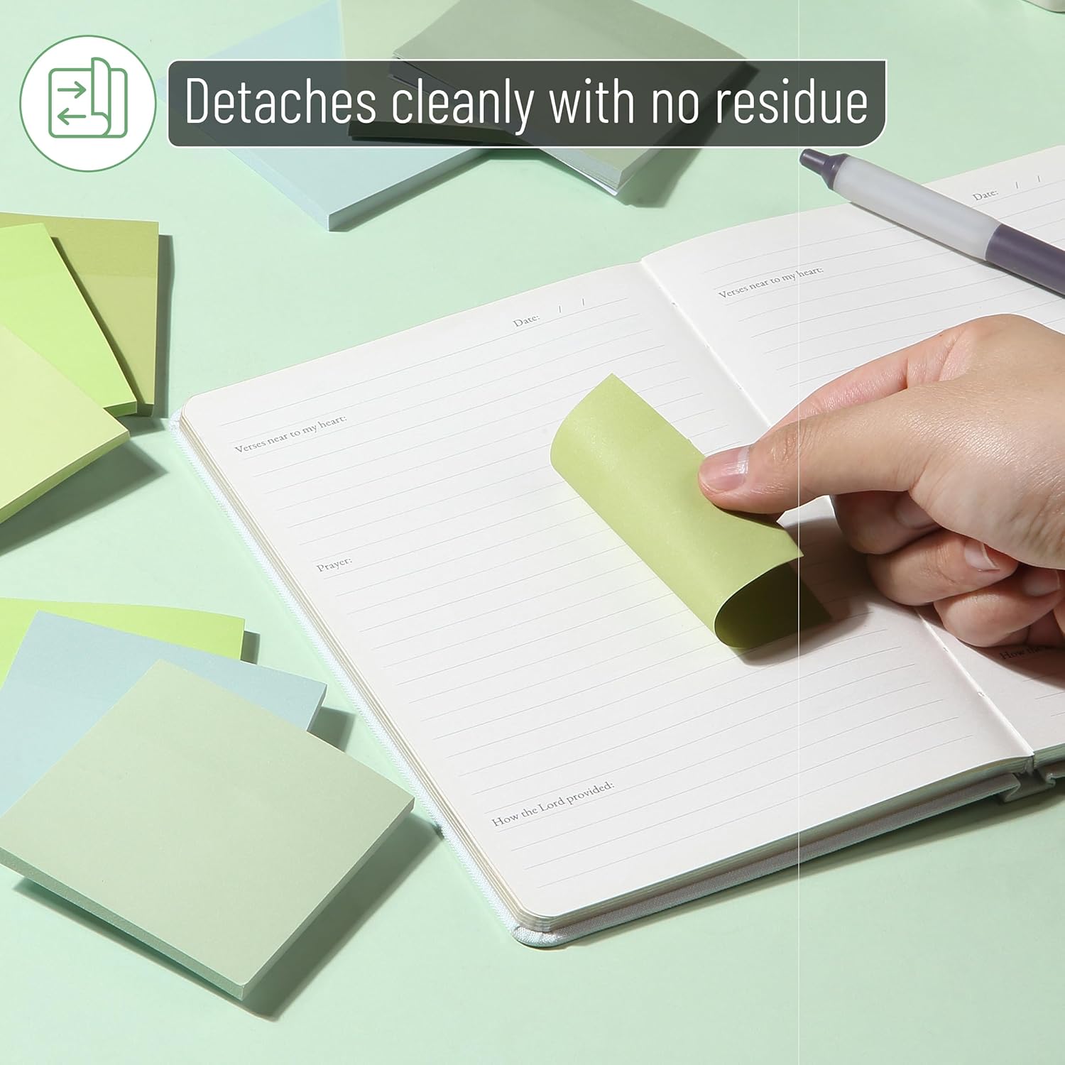 Green Sticky Notes 3x3 Inch, 12 Pads, 600 Sheets, Shades of Green