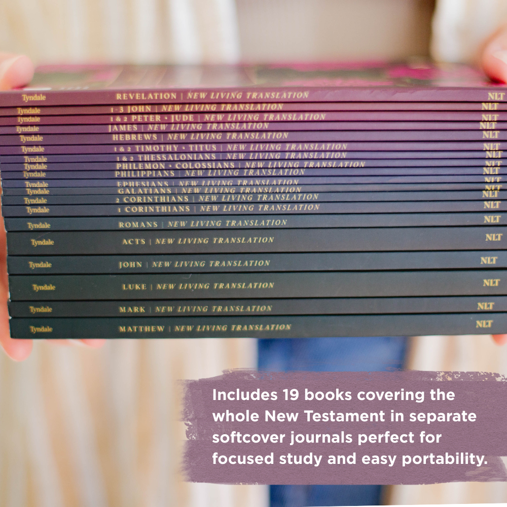 - This journal set includes 19 beautifully floral designed softcover books, each having a different book or books of the New Testament in the easy to read NLT translation.