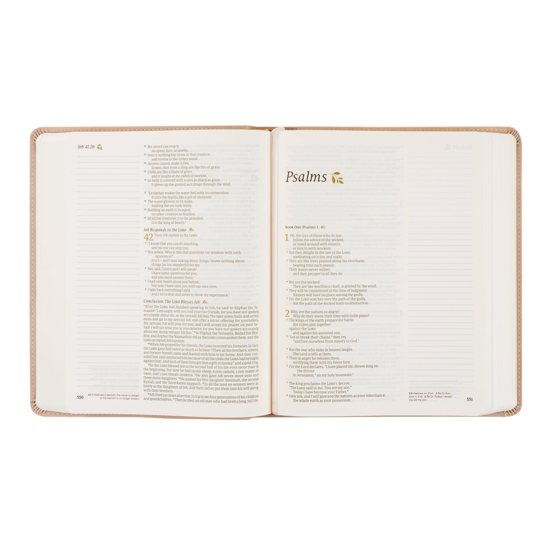 This blush pink Bible was also inspired by the rich history of the word Shiloh in Scripture. Known as a central place of worship for God’s people, we see the rich history of our Lord and his covenant with us. As we remember his work, may we find fullness of joy in him—and life evermore!