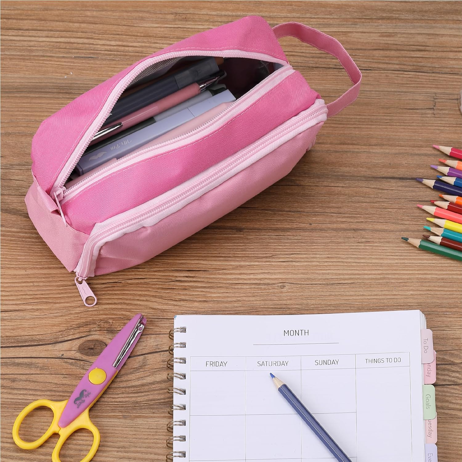 - This pencil case is designed to fit a wide range of supplies such as pens, pencils, markers, erasers, scissors, calculators, and more, ensuring everything you need is within easy reach.