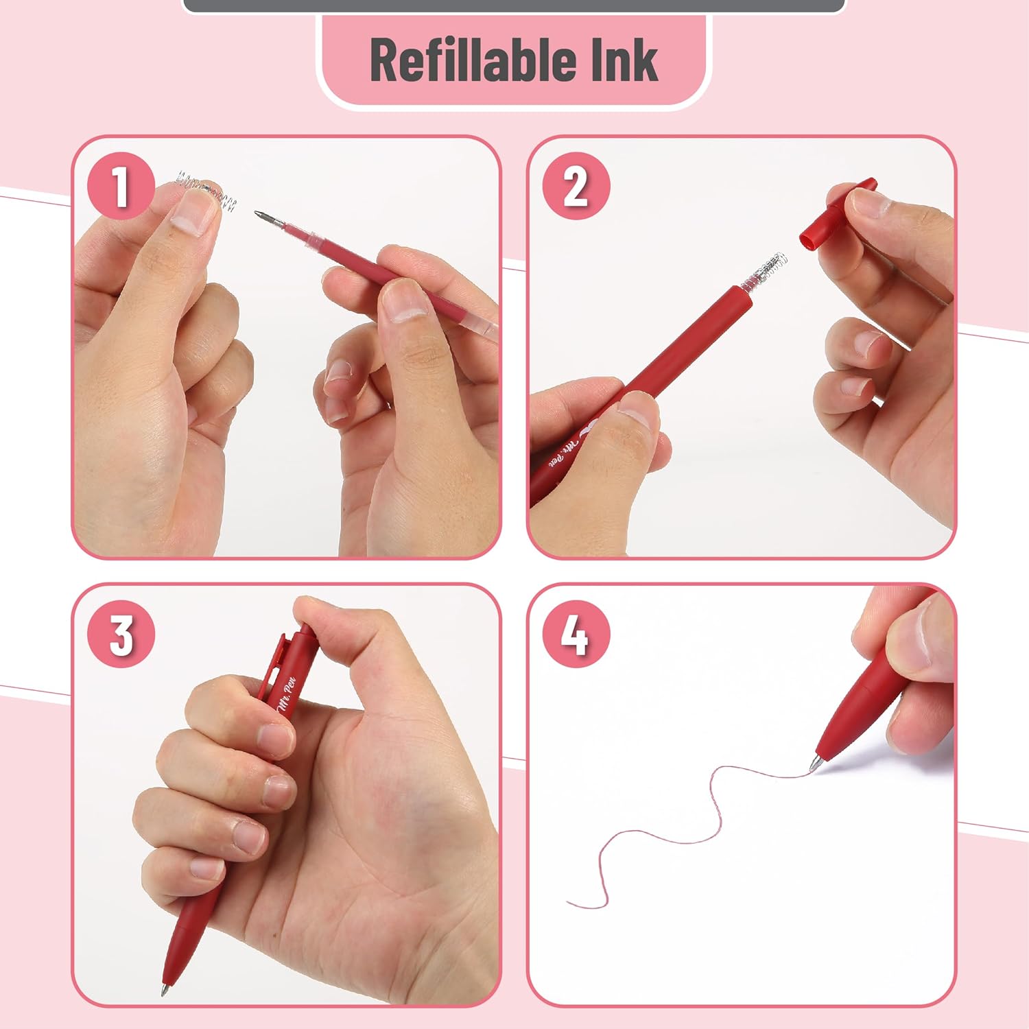 Retractable Gel Pens, 12 Pack, Cute Design, Colored Ink, Quick-Dry, Fine Point 0.7mm