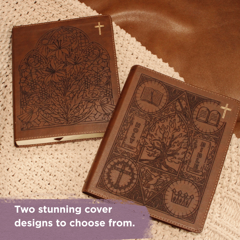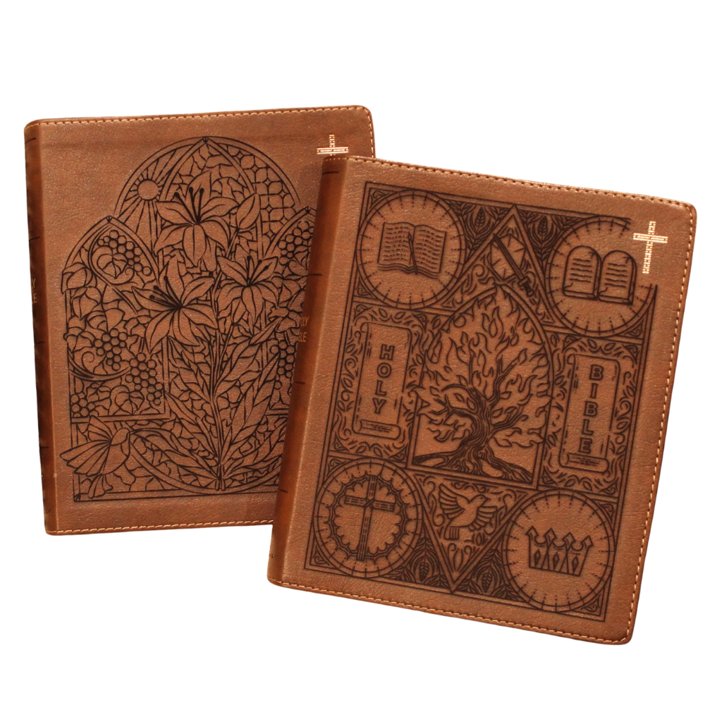 - A Bible as beautiful as His Word – This brown NIV Journaling Bible features a laser-engraved gold cross on the cover, and the words of Jesus in red throughout. Designed to inspire both your quiet time and your creativity.